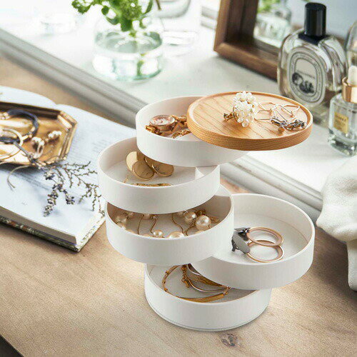 ■ 商品サイズ(cm)W 10×D 10×H 12.5■ 商品重量(g)455■ 品質表示本体・台座:ABS樹脂 台座・支柱:スチール(粉体塗装) 蓋:天然木 マット:フェルト 【メーカー・ブランド】 山崎実業 / ヤマザキ / やまざき / YAMAZAKI Tosca 5-Tier Stacked Jewelry Box With Lid 【#87】