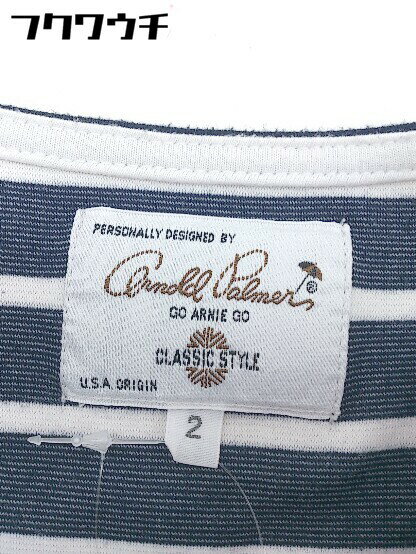 ◇ Arnold Palmer ボーダー 装飾 チェーン 七分袖 ミニ ワンピース サイズ 2 ネイビー ホワイト レディース 【中古】管理番号110824000361020210828ベースW56/横付属品無全体的に毛羽立ちや毛玉あり。