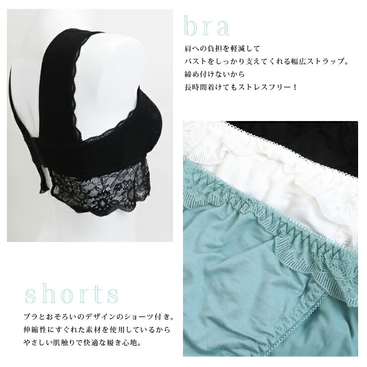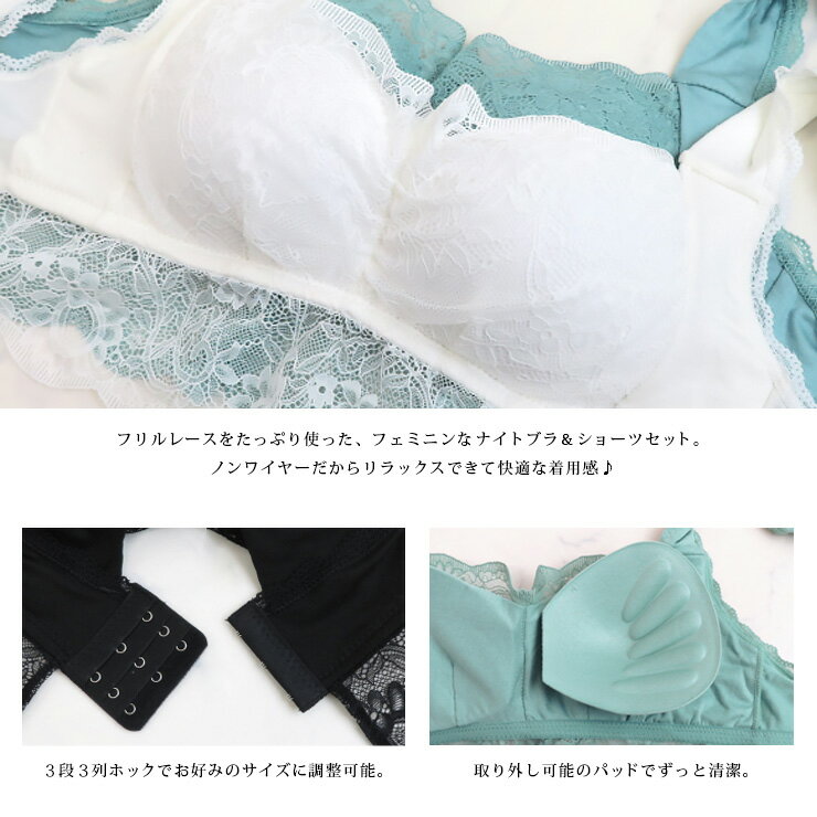 大きいサイズ レディース下着 ナイトブラ ショーツセット ノンワイヤー 無地 レース L LL 3L 4L 5L ブラック ホワイト ミント 新入荷 ネコポス不可