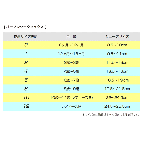 オープンワークソックスは、サイズ表記よりも若干ゆったりした大きめの作りとなっております。