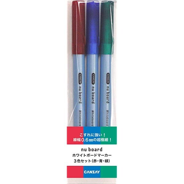 ≪ 欧文印刷 ≫ CANSAY NUboard (ヌーボード)超極細 線幅0.6mm ホワイトボードマーカー3色セット(赤・青・緑) BSLC0RCG03